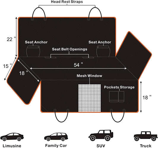 Premium Waterproof Dog Car Seat Cover - Heavy Duty Nonslip Hammock with Storage Pockets & Mesh Window for Cars and Trucks