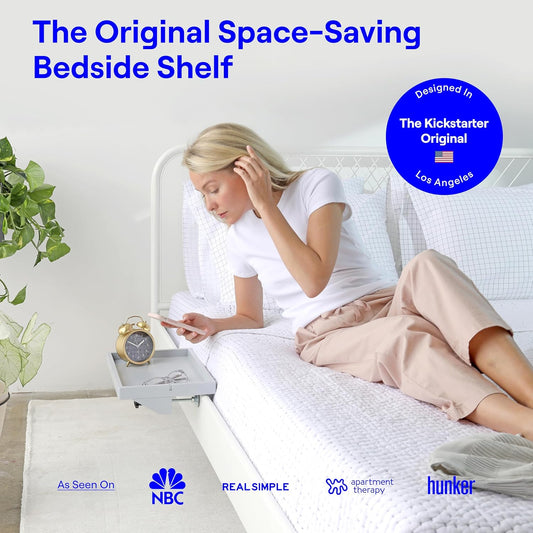 Stylish Bedside Shelf for Bunk Beds - Perfect College Dorm Room Essential, Clip-On Floating Desk Tray & Storage Solution in Original Grey Wood