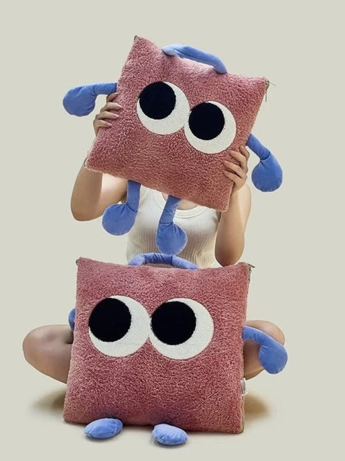 Big Eyes 2-in-1 Convertible Throw Pillow Blanket, Cute Whimsical Soft