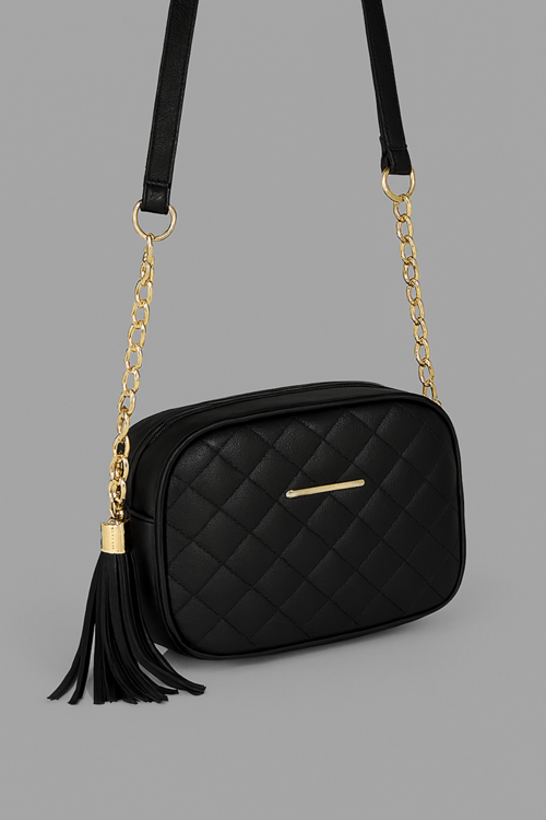 Elegant Cream Quilted Bag with Gold Chain Tassel