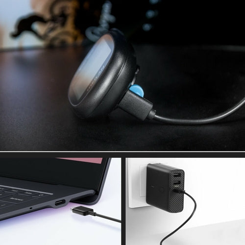 Use the included USB-C cable to charge the device. The green light indicator will turn on once it's fully charged (usually in 3–4 hours).